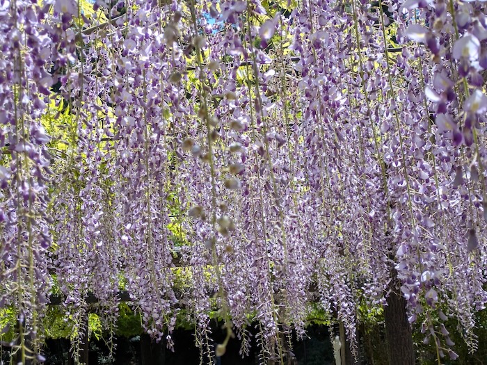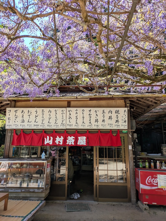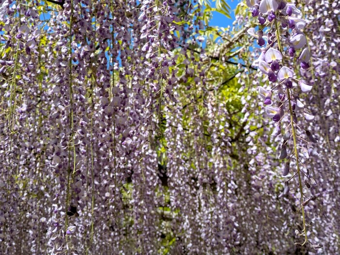 お店の方によると藤棚の花はまだ蕾もありますが、朝は落ちた花びらが床に紫のカーペットをつくるそうです。綺麗に掃除されていますね、と言うと、