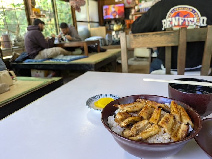 ここのあなご丼が美味しいと妻がいうものですから、僕はお食事、妻ムスメはお買い物。みんな満足のウィンウィンのお別れ。