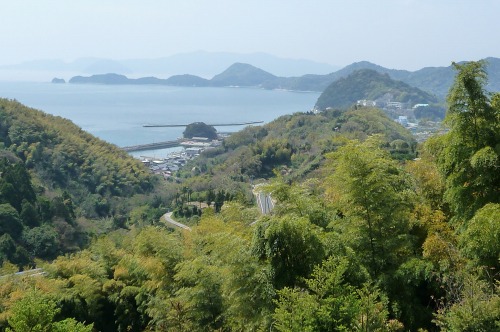 この島、海岸線はダラダラと走れる緩やかなコーナーの続くよくある道(でも、海水は本当に驚くくらい青く透明できれいです)なのですが、海岸線から1本山に入ると、どこを走ってもすばらしいワインディングが延々続くのです。尾根の右に左に広がる瀬戸内の多島美を堪能しながら、交通量がほとんどないワインディングを思う存分‥というより飽きてヘトヘトになるまで楽しむことができます。