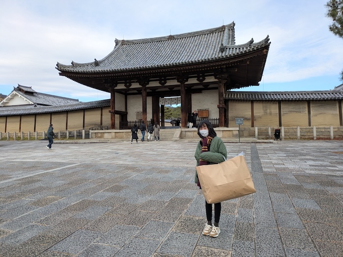 声が出せないのでムスメとラインで会話しながら、いくつか用意していた3日目のプランの中でも一番地味だけれど動きまわらなくて済みそうな法隆寺・東大寺プランを挙げると「興味ある」というじゃないですか。偉いぞムスメ。