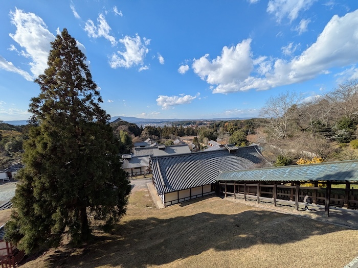 振り返ると奈良の街が一望。何気に主張の激しいこの杉は良弁杉という由緒ある3代目の杉だそうです。