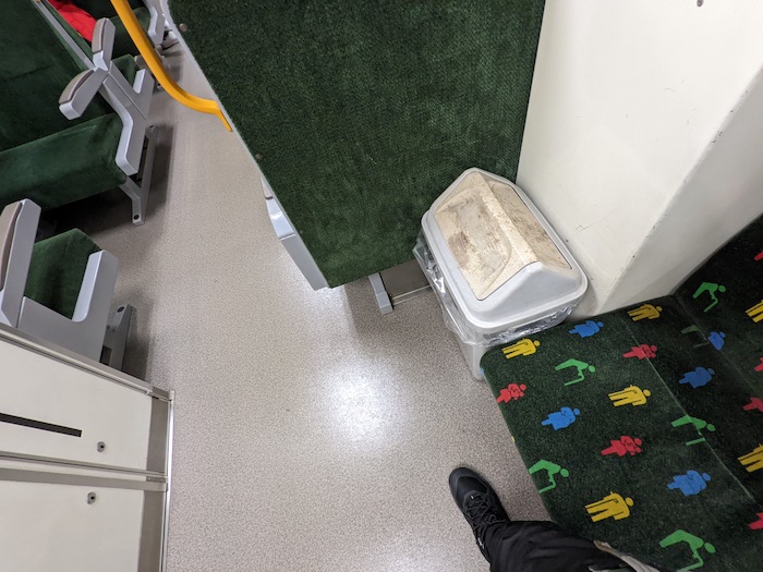 車内にゴミ箱が設置してある‥この辺は船みたい。