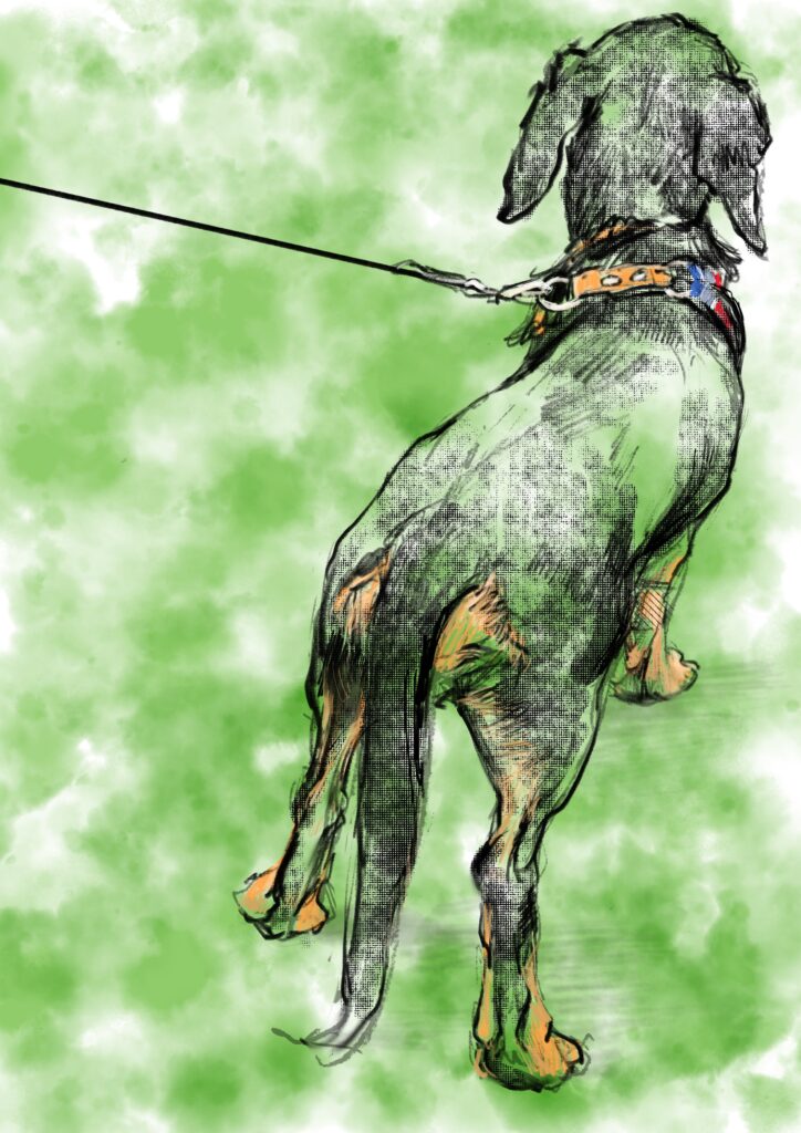 少しライトに。リードに引っ張られることに抗うような力のかかりかたで一点を見つめる麦茶の姿勢がかっこいいなと思って。