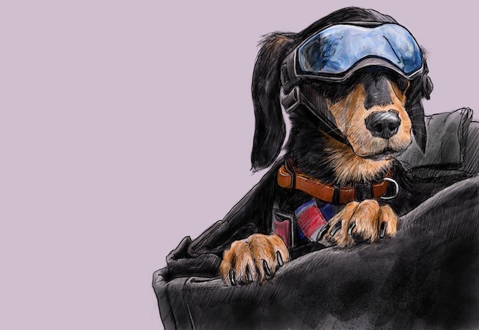 仔犬のころ。今よりも短い尻尾をぴちぴち振るのが超絶可愛い手乗りサイズの犬だった。