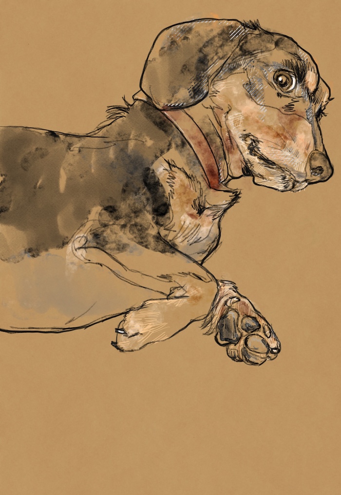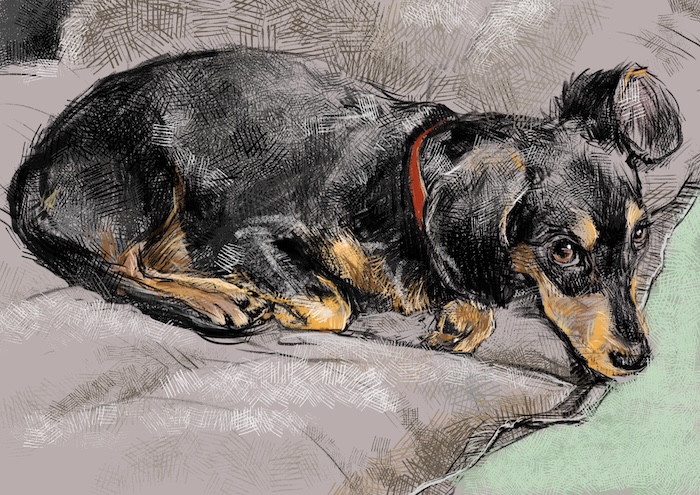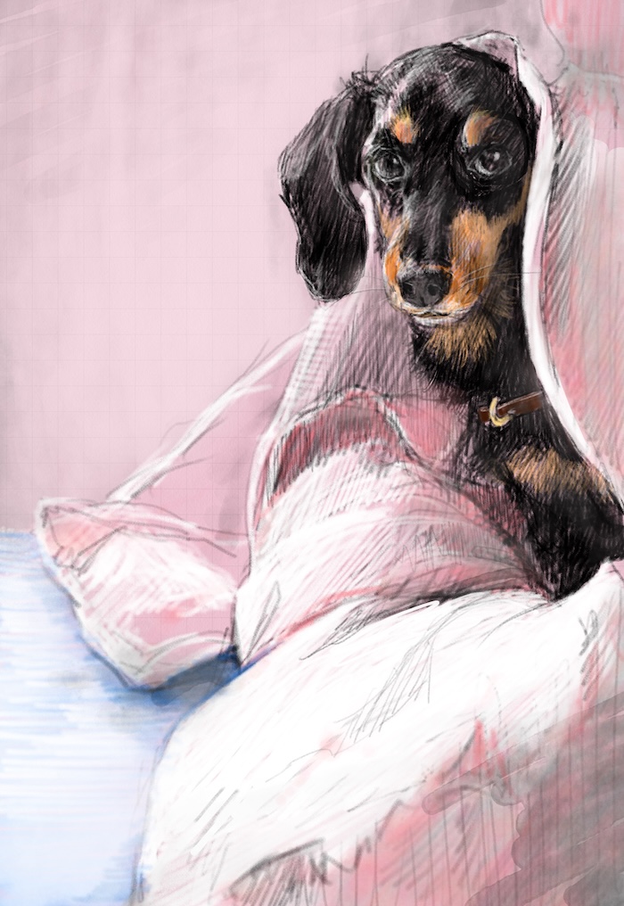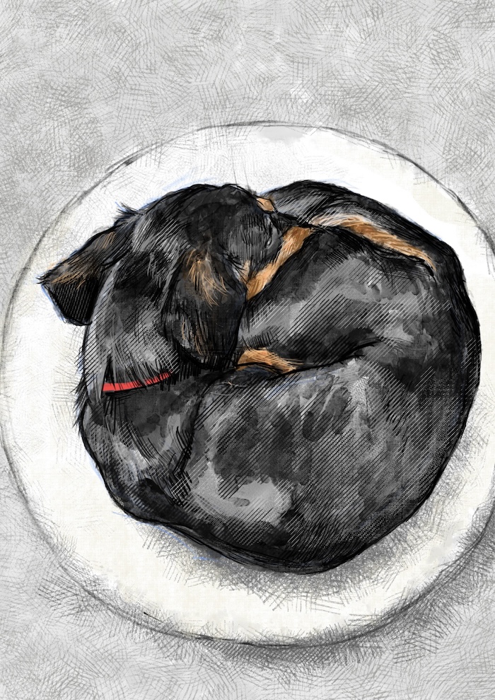 別の絵を描いていたので時間がなくて寝ている麦茶を描いたものだけれど、こういうのでイイと思う。