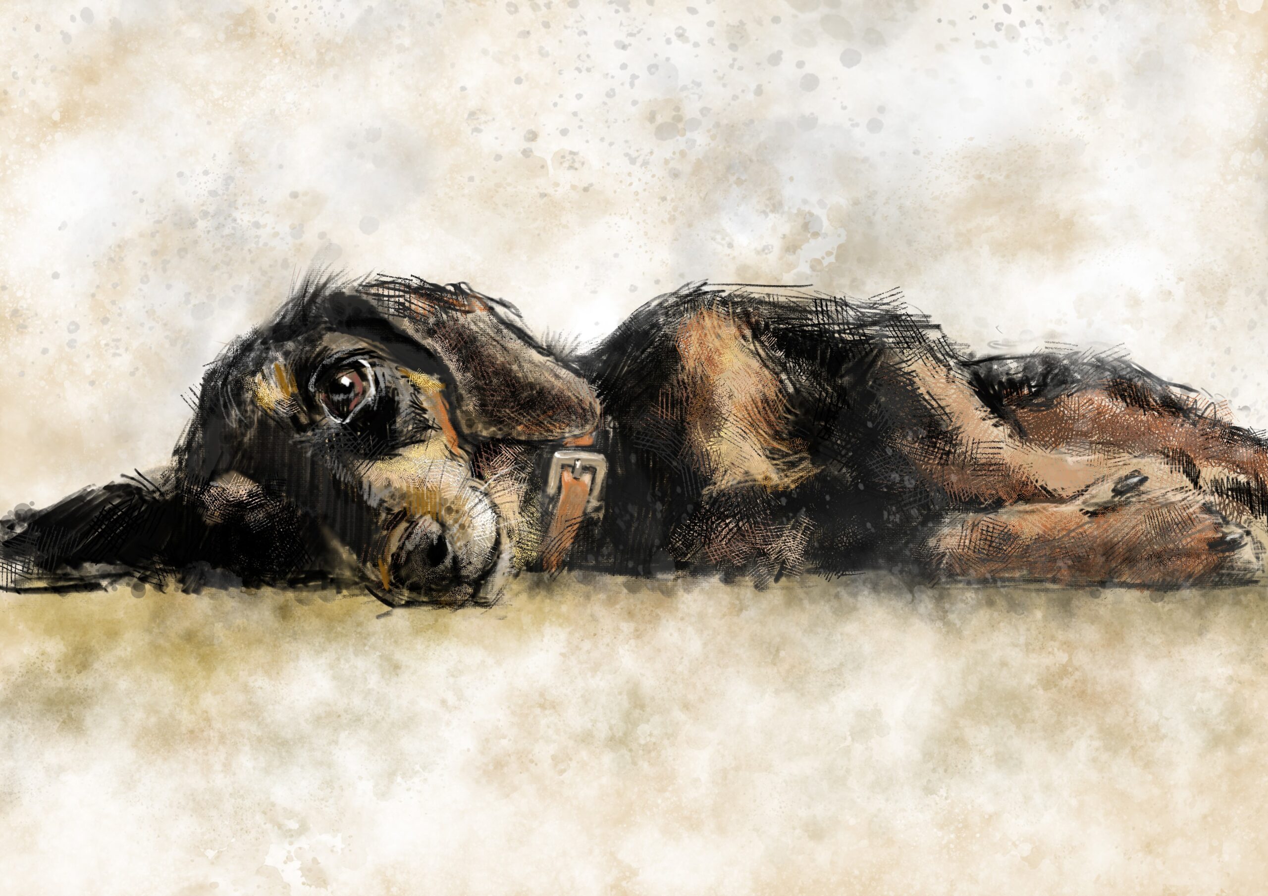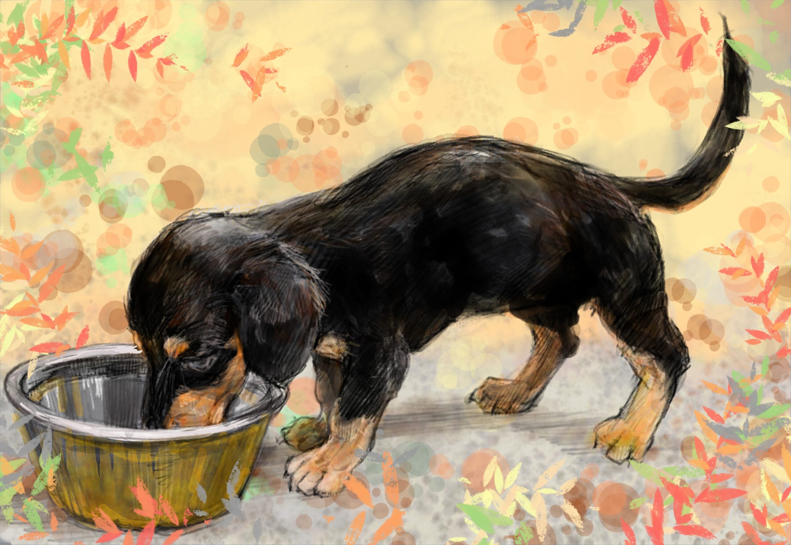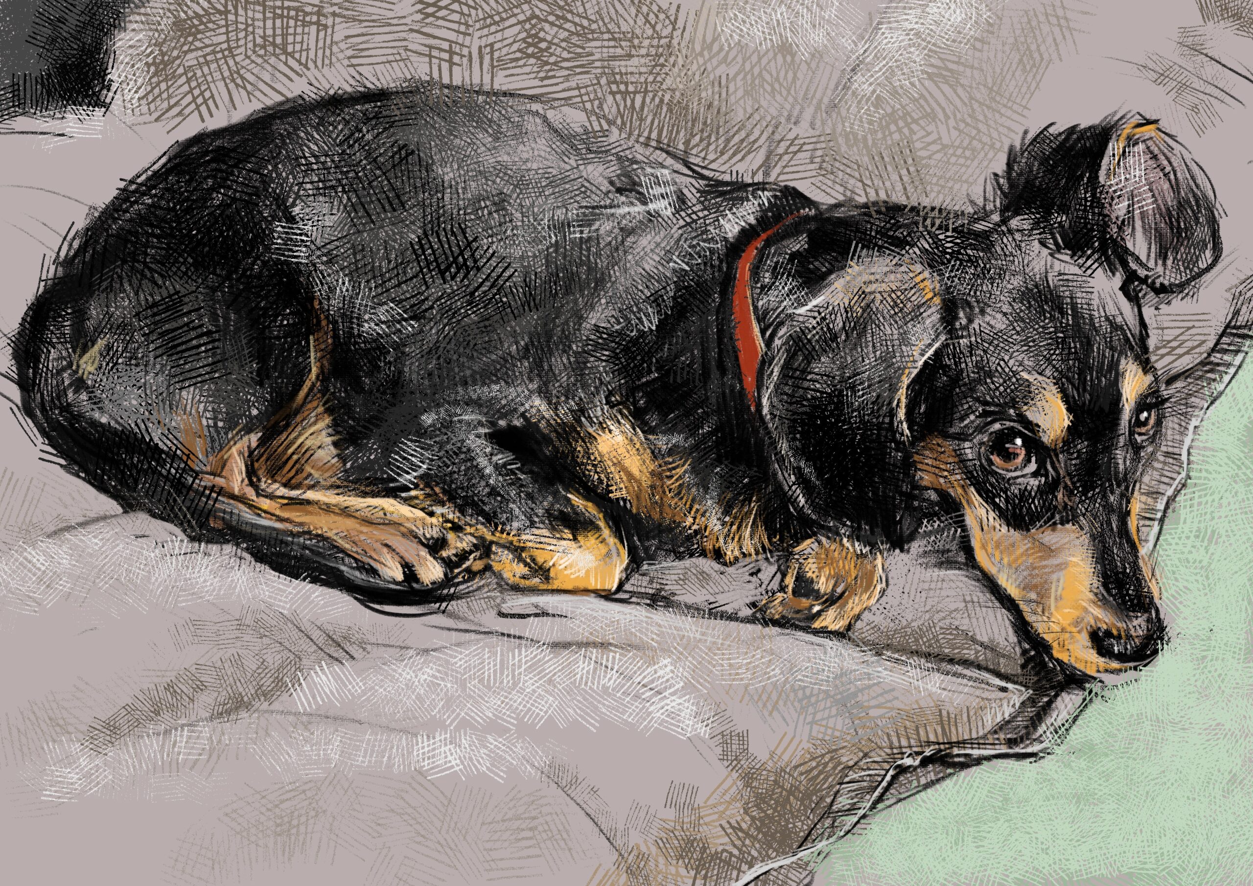 別の絵を描いていたので時間がなくて寝ている麦茶を描いたものだけれど、こういうのでイイと思う。