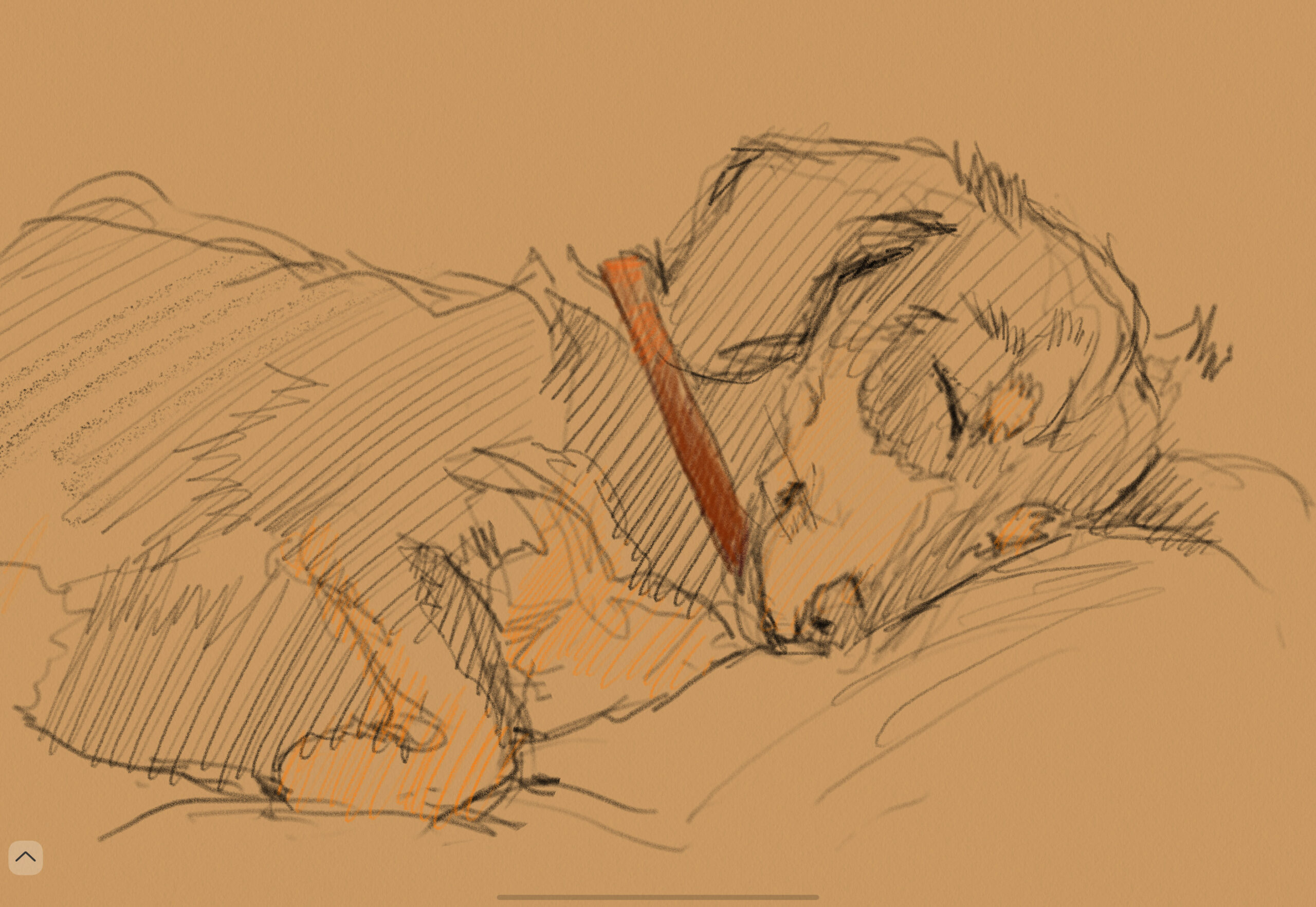 寝ていてくれるとスケッチするだけなら描けます。物音に敏感なのでなかなか描き終わるまで動かないままでいてくれない。