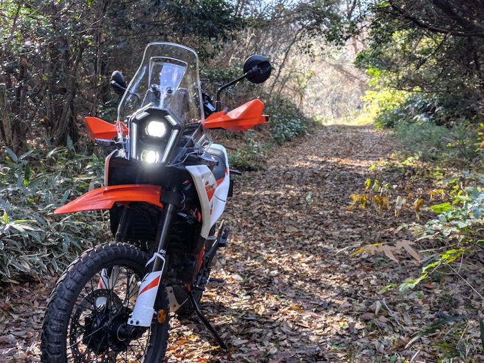 うちにあるCRF250Lとこのバイク、思い切り走るステージが被ってるじゃないですか。でもね、CRF250Lは高速道路もなんとか走れるデュアルパーパスで、390AdventureRはオフロードもそれなりに走れる快速デュアルパーパス。オフロードを走る点で被っているように見えるけれど意外と光るステージは違う2台だな、と感じました。