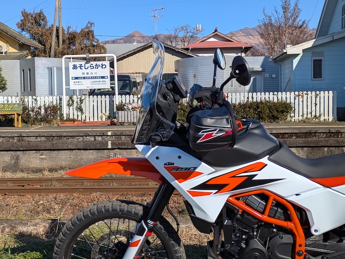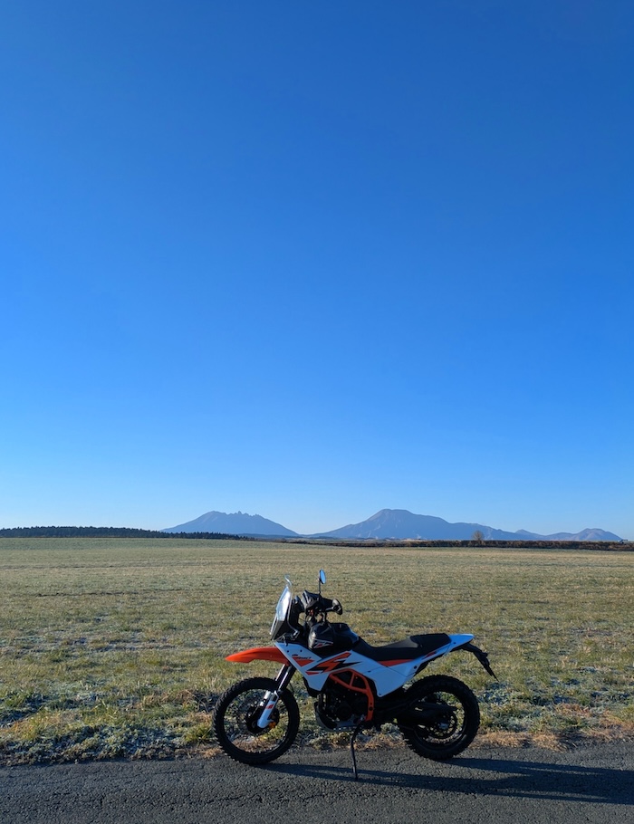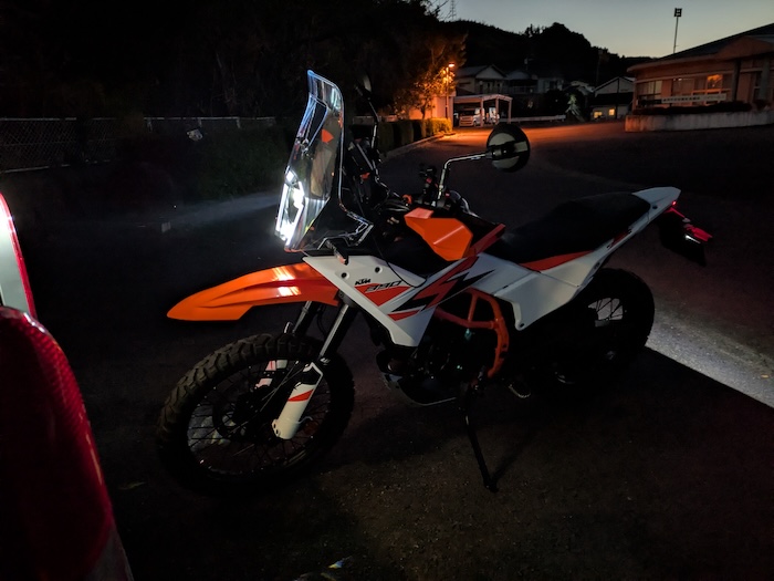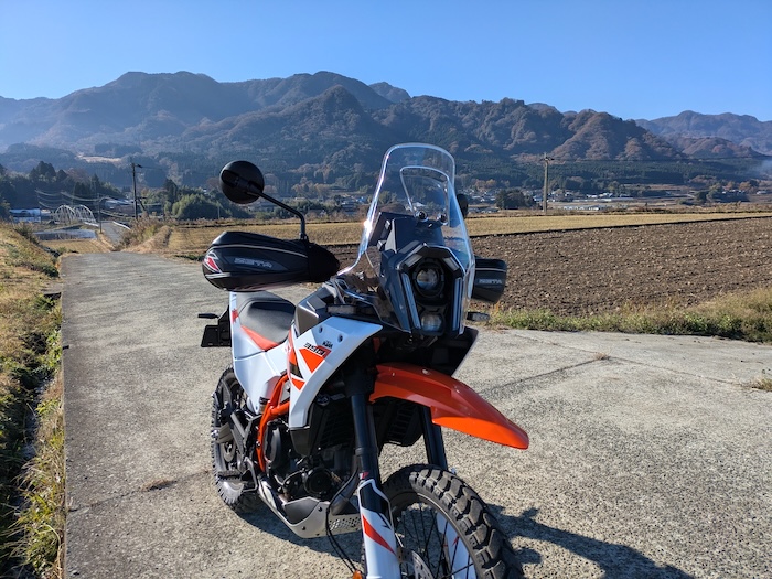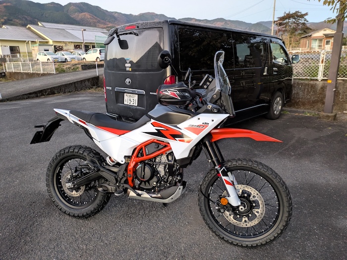 朝6時、バイクを下ろしてスクリーンやミラーを組み付けて、試乗もしたこともない390AdventureRに初めて乗ります。