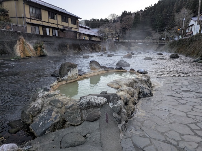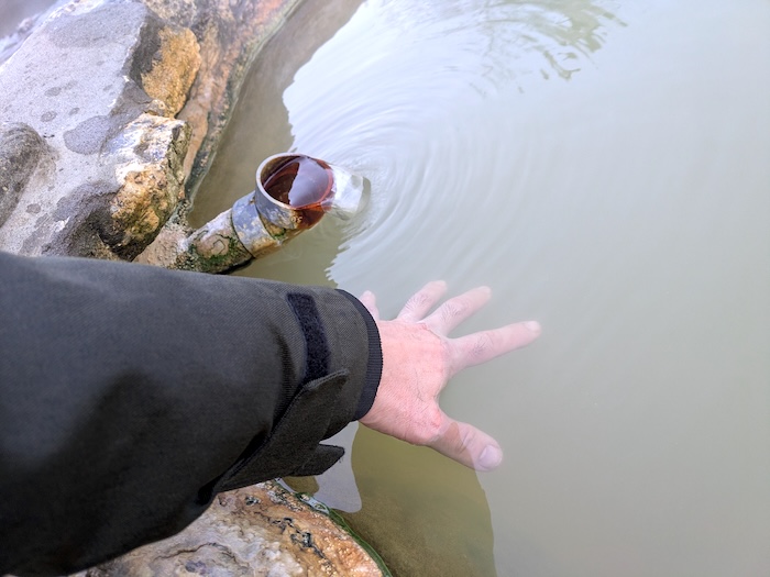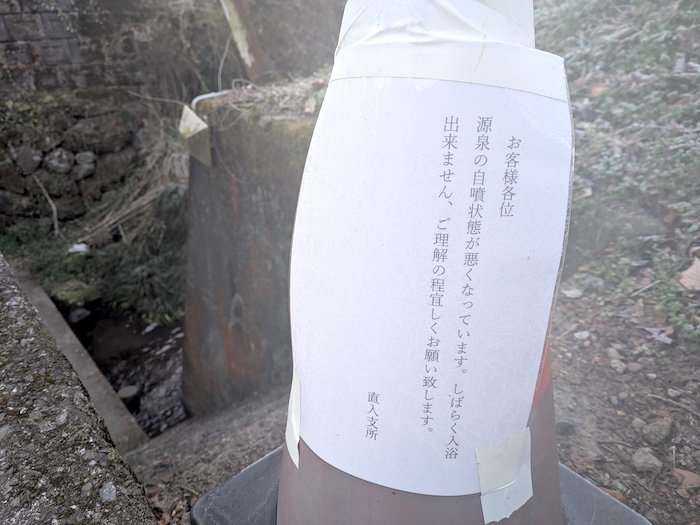 いつもならヘルメット一丁で入るのですが、源泉の状態がよくなくて入浴はしてくれるなという掲示がありました。手を漬けてみた限りでは問題なさそうなんですけれどね。