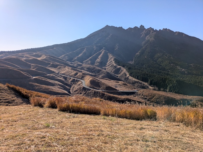 それはそうと、冬の阿蘇・久住慣れしていない怖さ。阿蘇の北斜面の日陰は路面が凍っていてヒヤヒヤしたにも関わらず、帰りのルートで牧ノ戸峠越えを選んでしまいました。峠越えした北斜面は濡れてるんだか凍っているんだかわからないような路面でこちらもヒヤヒヤしましたわ。