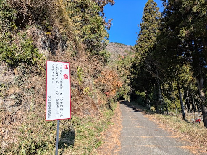 外輪山からカルデラ盆地へ降りてくる道は走り尽くしたと思っていたのに、まだ走ってない道がありました。というか昔通行できなかった道でした。