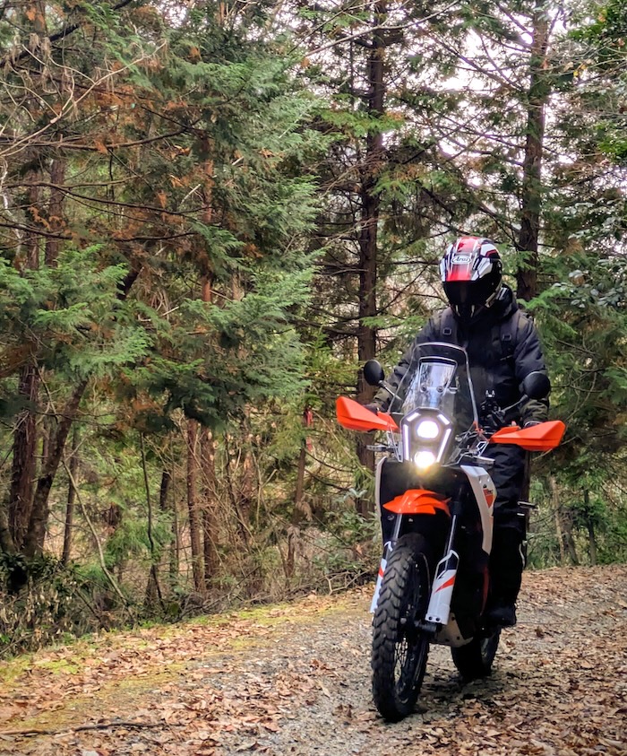 701Enduroは690DUKEと同じLC4エンジンを積んでいるので、僕がこれまで乗っていた690DUKEと一緒に出かける際はどちらが前を走っていても「ここ!」というタイミングで遠慮なくダッシュできていました。このエンジン、一度乗ったら病みつきになるパンチがあって、どこからでも弾けるように加速するのです。ただ、690DUKEと一緒に、ではどうしてもオンロードツーリングになってしまう。