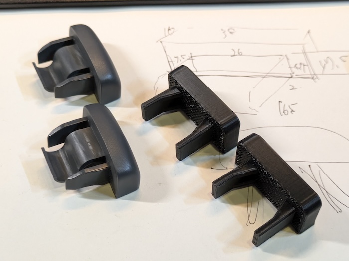 しばらく前に3Dプリントしましょうか?と製作を引き受けていたのですが、雨のお盆休みですることのないこのタイミングで車両ごと自宅に来ていただいて、その場で採寸して図面をつくって印刷しました。