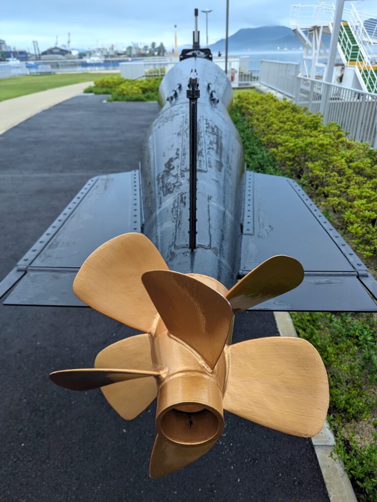 こんなもの「若い命の大量消費を気にもとめない軍のお偉いさん」が考えたんだろう、と思うじゃないですか。ところが発案したのは二十歳の黒木博司という尉官で、軍上部は脱出装置が取り付けできないなら兵器として認めない、というところから開発が始まったとあります。紆余曲折を経て人間魚雷として開発が進んでしまうわけですが、黒木さん自身の搭乗した訓練航行で徳山沖の瀬戸内海海底に刺さるという事故が発生し、黒木さんはここで殉職されています。酸素の減っていく中で残した報告書と遺書が発見された艇内で見つかっていて、母親の「百人の人に笑われても一人の正しい人に誉められるよう、百人の人に誉められても一人の正しい人に笑われないよう」という教えを体現する、大変真面目に物事を考えていらっしゃった方だということが伺えました。