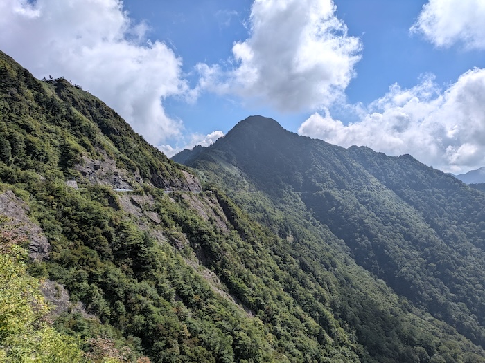 これがまたほとんどの場合川沿いの道が「旧道」で、道の真ん中に苔の生えたような道。嫌いじゃないんだけれど、こうして雨が降ったり止んだりの路面を延々これ、というのは何かの修行か罰ゲームです。