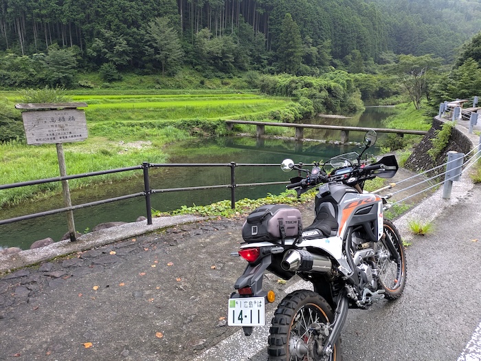 帽子を被って歩いていたから気が付かなかったけれど、バイクに戻るころにはパラパラと雨が落ち始めました。カッパを着用して四万十下りツーリングスタート。