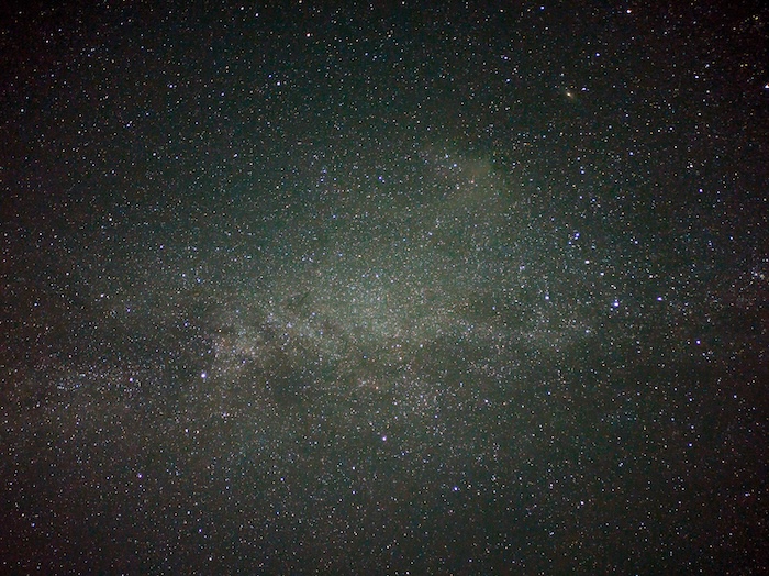 西に沈みかける夏の大三角に向かって、カシオペアから天の川が頭の真上を横切っていました。ありがたいことにこれなら三脚を持っていなくてもベンチに携帯を置いて星空モードで撮影することができます。