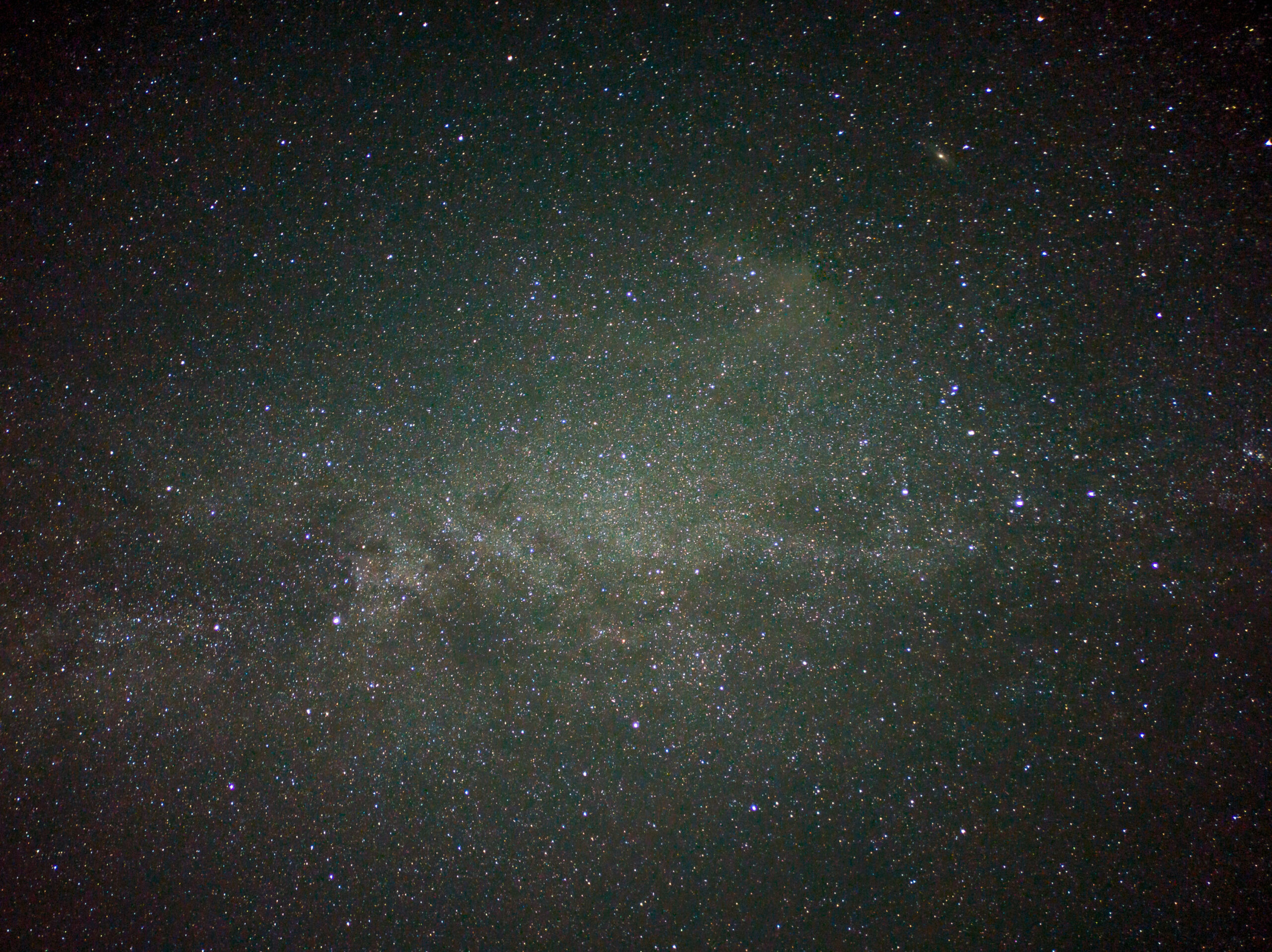 上の写真、右上下中央にカシオペア。その上に小さくアンドロメダ星雲が写っています。