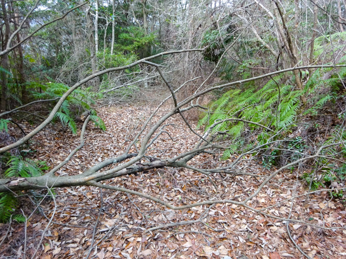 倒木が道を塞いでいることが多いです。