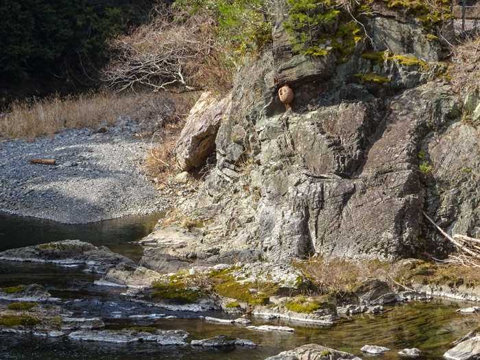 美川ムーバレーの北側に少し行ったところに、チャートの露頭があるのを知ったので河原に降りて近くで見てみようと思ったのに‥