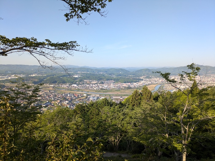 林道を抜けた先は三次を貫くように流れる馬洗川の様子を見ることができる展望所。そこから町まで舗装路を降りていけるけれど、今回はここで折り返して再び元の林道へ。