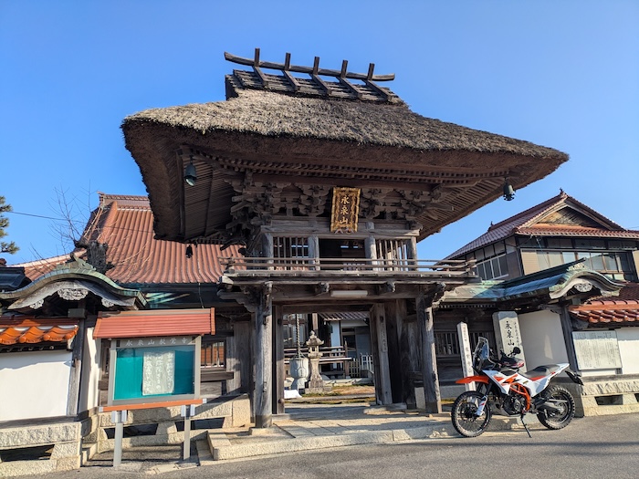 マニアック・ポイント: 非常に珍しい**「茅葺き(かやぶき)」の山門**です。お寺の門が植物の屋根で覆われている姿は、どこか素朴で、祈りの原風景を感じさせます。