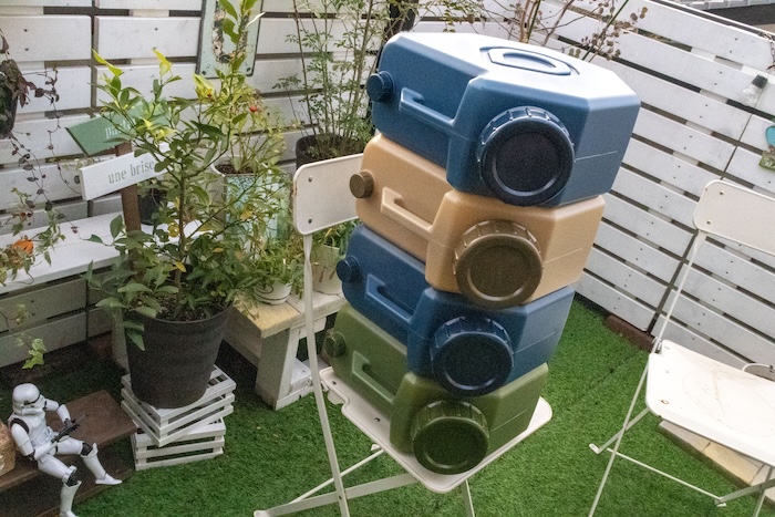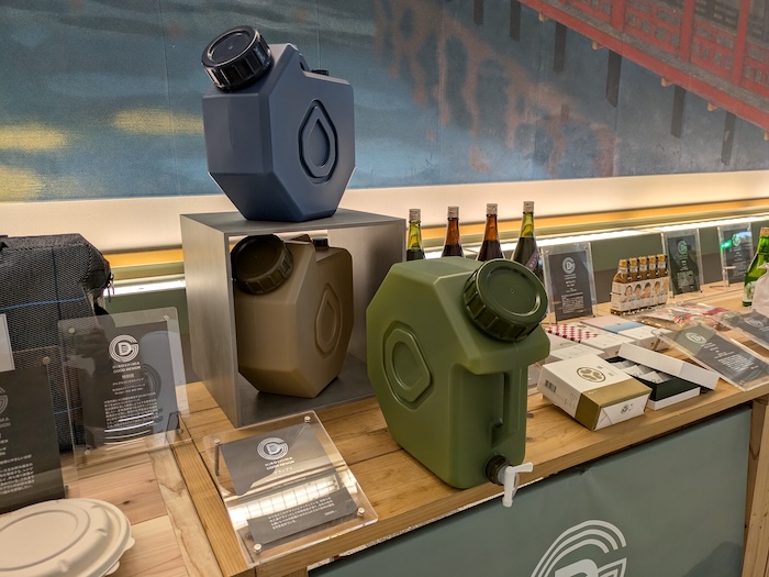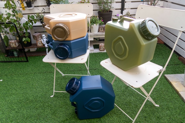 ブースにいらっしゃったこのタンクのデザイナーさんは「災害時の水の運搬について考えた」と言われていました。このタンクの注水口は中に手を突っ込んで洗えるくらいの広口なので、給水車などから水を受けるのがとても楽なのです。