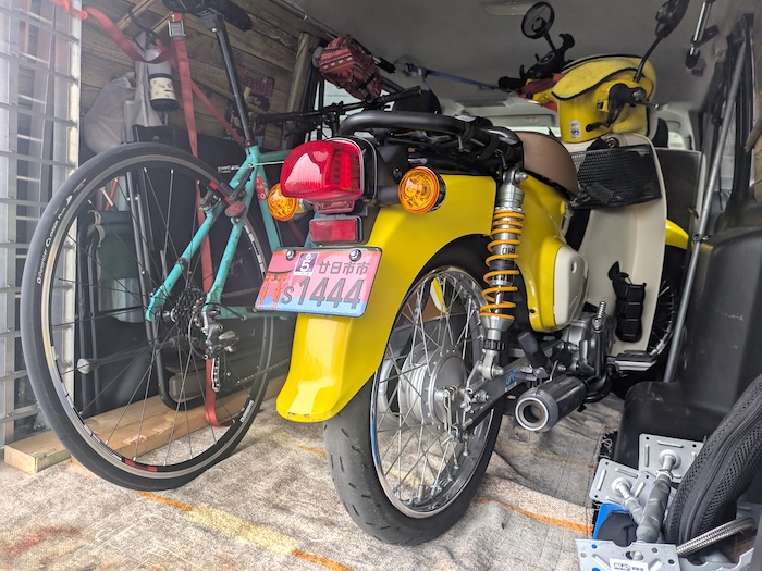 翌日、ハイエース出勤してサルベージ。ちなみに、一緒に載ってるムスコの通学用自転車も前日パンクしたので拾いに行ったもの。