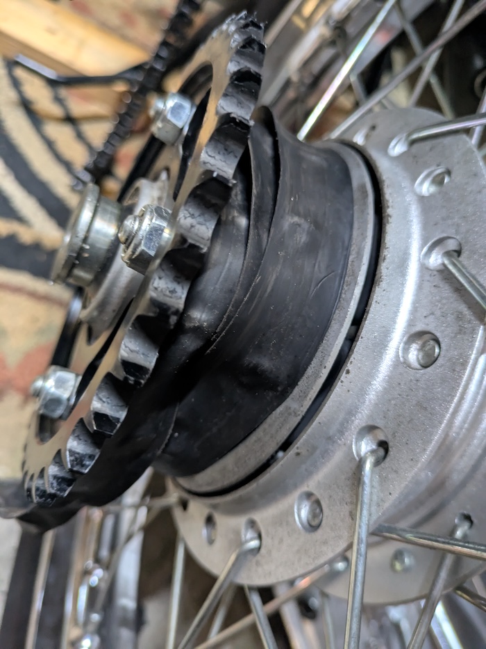 もうタイヤチューブごと交換してやろうとオーダーしたチューブが翌日届いたので早速タイヤを外してみると‥あら、ハブがどうして黒いの?