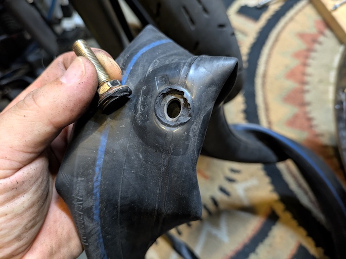 これもここが原因でパンクしたのか、パンクしているのに走ったから負荷がかかってもげてしまったのか、イマイチ分からなくなってしまいました。
