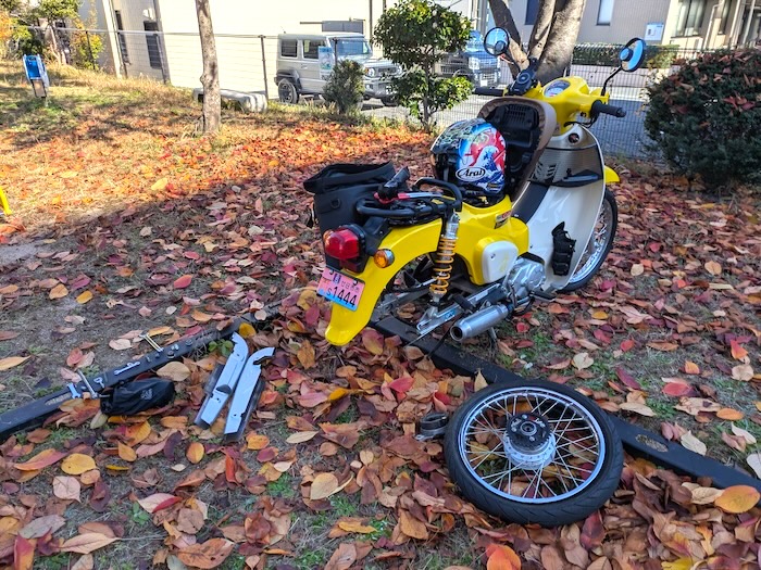 ノロノロ帰ろうかと思いましたが、せっかく出てきたわけだし家族も麦茶を待っているので、出先で修理です。