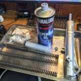ノーマルスプリングなら奥の方でバネが踏ん張るから油面もう少し下げてもいいかも。カブのフォークオイルの粘度上げ、一度は試してみると良いと思います。
