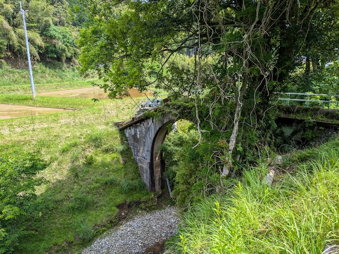 旧船木鉄道は宇部から北北東に伸びていた大正5年開業の鉄道で、大正15年にこのトンネル近くの吉部まで延伸されて総長17.7kmとなりました。その後第2次世界大戦に線路は鉄材として供出され、そのまま廃線、という経緯となっています。現在は元の運営会社の船木鉄道は同じ社名のままバス会社として経営が続いています。