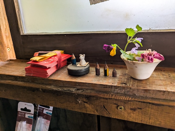 ちびた鉛筆を並べるとか、小学校か?と思うけれど、小さな動物の置き物と並べるとそのスケール感がまたいい。目線がすっと通り過ぎずに、少しゆっくりと時間をかけて、普段より近づいて見てしまう。