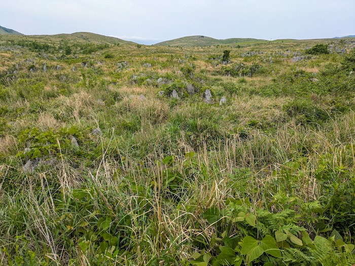 地の果てまで続く大草原に点在する白い石灰岩という「秋吉台らしい」風景は、人が手を入れないと維持できないつくられた景色だった、というのがこの雑然とした自然の草原を目にすることで理解ができます。今年はある意味珍しい秋吉台を楽しめると捉えるべきかな。