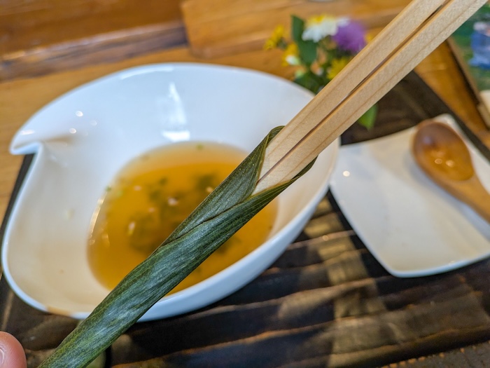 食べ終わって箸をしまう時に気がついた。箸袋が葉っぱだわ。