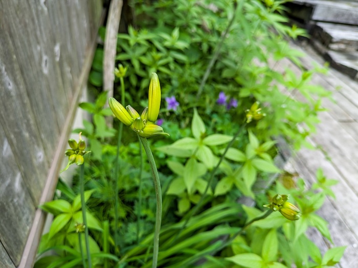 いろいろな花のつぼみが、これから庭を彩るために待機しています。