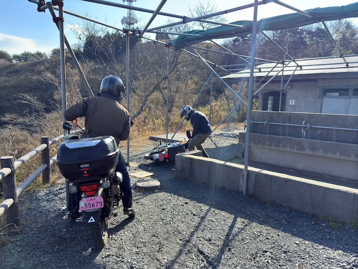 先の夏のツーリングでは湧水に頭を突っ込んで急速冷却することをトニーさんに教えてもらって、夏のツーリングがとても快適になりました。こういうふんだんに水が流れ出ている場所は夏場のクールダウンのために覚えておきたいです。
