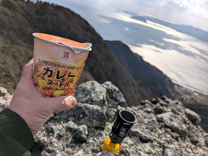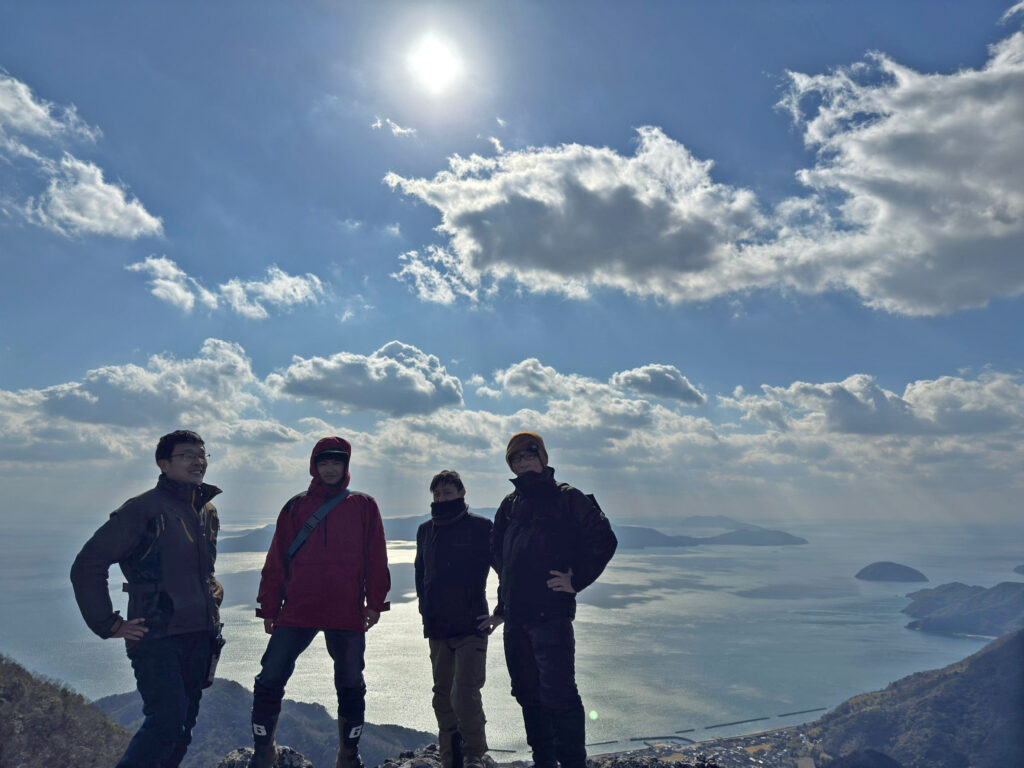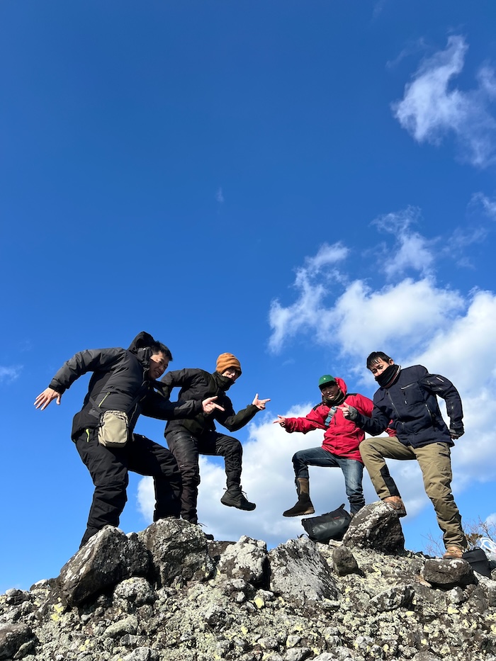 ゴツゴツした岩でできたほとんど水平面のない山頂からの景色は、これぞ絶景!と思わず唸ってしまう景色が広がっています。ここまでの道のりが日の当たらない山の北側の廃道をバイクで走って、途中から急傾斜の斜面を歩いて登るので、峠を越えた瞬間にこの景色が目の前に広がるとそのギャップに誰もがやられてしまうこと間違いなしです。