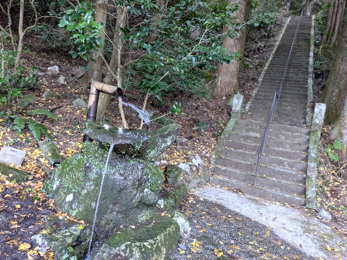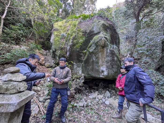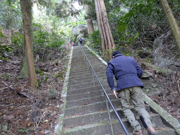 文殊堂のキャッシュへ向かいます。階段の正面に大岩が見えて、それに気がつくと結構怖いところです。