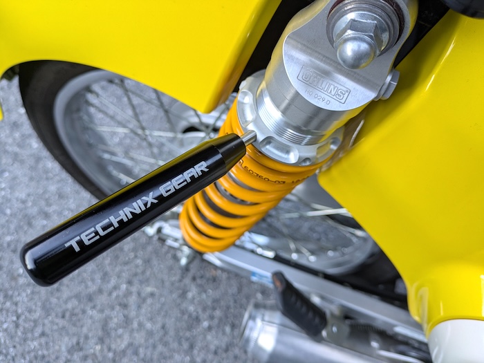 カブ110にはちょっとだけ長いハンターカブ用のリアショックなので、こういうセットはハズレじゃないんだろう。