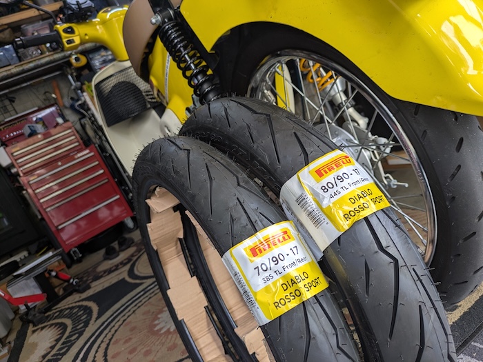 ミシュランが前後で12,000円くらいだったかな。ビジネスタイヤのランニングコストが3,000円/年に対して、ミシュランやピレリなどのハイグリップタイヤだと24,000円/年か。カブの常識からすると非常識に感じるのかな。大きなバイクの常識からするとこれでもランニングコスト低いって思ってしまう。